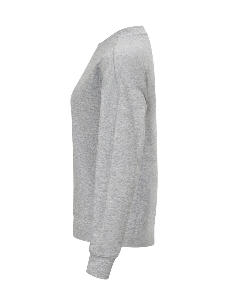 En något oversized tröja med rund hals för kvinnor, gjord av French terry-kvalitet och en bomull-återvunnen polyesterblandning. Har något sänkta axlar och en slits vid botten av sidosömmarna. Den bredare elastiska 2x2-ribben har enkel söm vid hals och ärmslut, med en hög mudd vid botten. Inkluderar kontrastfärgat nackband i twill och en lätt avtagbar nacketikett för ommärkning. Det mjuka, stabiliserade tyget är designat för intensiv tvätt och har anti-pilling-egenskaper.