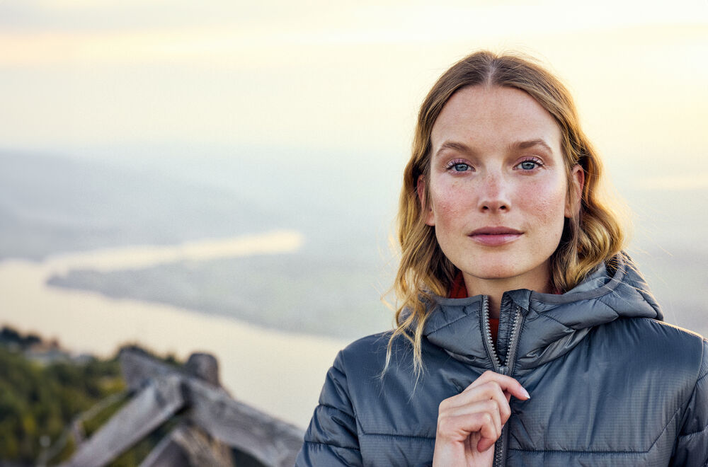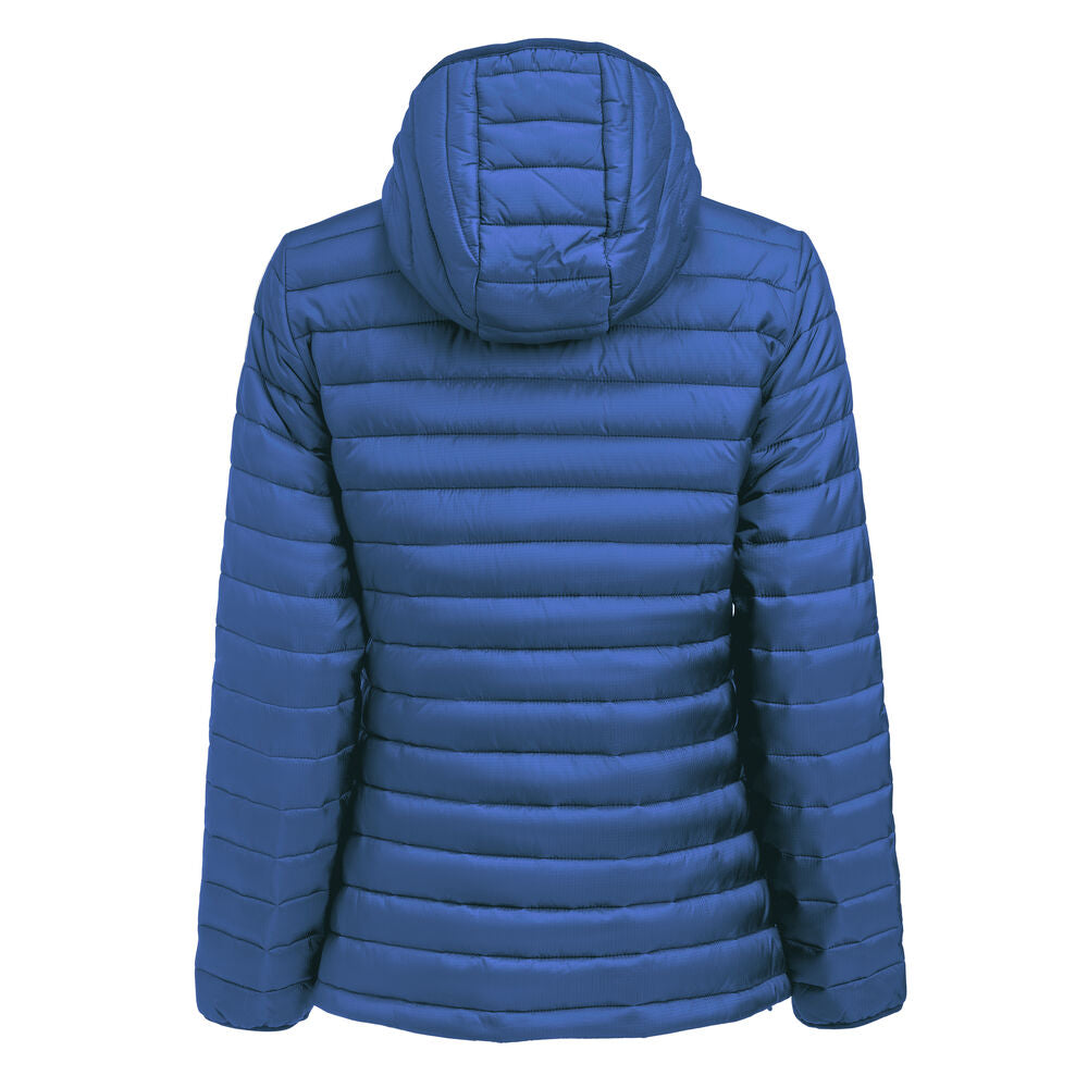 Denna vadderade jacka med fast huva är sydd i slitstarkt ripstop-yttertyg, tillverkat av återvunnen polyamid. En stilren och varm jacka, designad för att erbjuda exceptionell komfort och funktionalitet. Detta moderna ytterplagg har två dragkedjefickor på sidorna och en dragkedjeficka på bröstet för praktisk och säker förvaring. Elastisk kant vid ärmarna och justerbar fåll med elastisk dragsko ger anpassningsbar komfort. Innerficka med kardborreband och hakskydd för bekvämlighet och skydd.