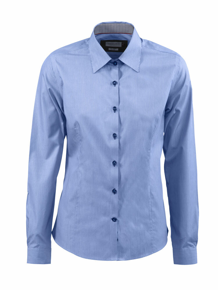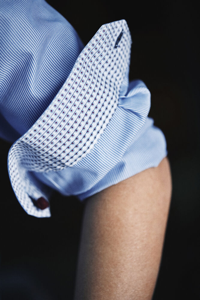 Vita smala ränder på en blå- eller antracitgrå bas, gör en elegant ny version av den klassiska randiga skjortan. Skjortan kan perfekt matchas med alla färger och mönster, och är ett utmärkt val om du ska lägga till några färger till din vita och blå standardgarderob.