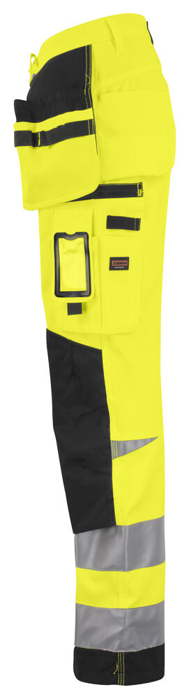 Slitstarka och sköna STAR-kvaliteten med mjuk insida, lång livslängd och snabbtorkande egenskaper. Rymliga hölsterfickor somkan stoppas ner i framfickorna. Bakfickor med förstärkt insida. Hammarhank. Extra hällor för bältet på de största storlekarna. Tumstocksficka med knivhållare. Benficka med blixtlås, telefonfack, ID-kortshållare och extrafack. Förböjda knän för optimal passform. Knäskyddsfickor i slitstark polyamid med reflexpasspoaler och två höjdnivåer för knäskydden. Förstärkt benslut i polyamid som inte absorberar fukt. Reflexpasspoal och dragsko i benslutet. Finns även som herrmodell, 2222.