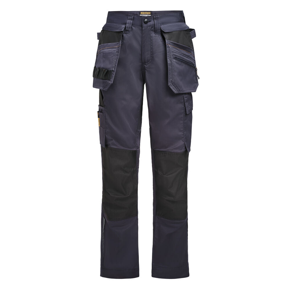 Lättskött polyester/bomull som håller färg och form. Stretchpaneler på bakstycket, för ökad rörlighet. Rymliga framfickor. Avtagbara, förstärkta hölsterfickor med zip-in funktion, med förstärkning och extra fack och extra ficka med blixtlås. Bakfickor med lock. Benficka med extra fack och ficklock med kardborrestängning. Tumstocksficka med knivhållare. Förstärkning på knäskyddsfickor och med två höjdnivåer för knäskydd. Byxbenet kan förlängas med 5 cm genom ett utvik i benslutet. Tvättas i 60 grader (vit tvättas 40 grader).