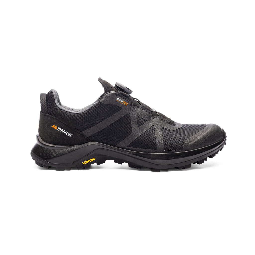 Monitors Race är en sportig trekking sko för arbete, skogspromenader och jogging. Den har en Vibram -yttersula med utmärkt grepp på ojämna underlag, en polyuretan-mellansula och en ovandel i luftigt m esh med TPU-detaljer. Skon är vattentät tack vare Monitex-membran som bibehåller ventilationen. Monitors Race sko är en sportig trekking sko med många användningsområden. Den passar lika bra som a rbetsko när man behöver certifierade skor, på promenaden i skogen eller i joggingspåret.Yttersulan ä r från Vibram och har ett fantastiskt grepp på tuffa, ojämna och leriga underlag. Mellansulan är til lverkad i Polyurethan och ovandelen i ett luftigt meshmaterial med TPU detaljer. Skon är försedd med ett Monitex membran som gör den helt vattentät utan att tappa ventilationen.