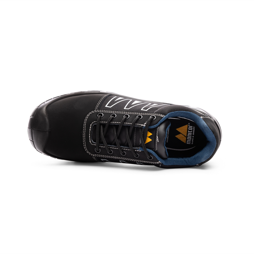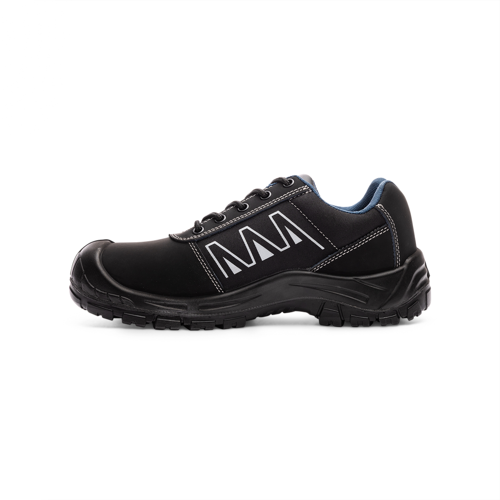 Skon är ESD-godkänd och uppfyller kraven enligt EN ISO 20345:2022. Den breda passformen och den klassiska snörningen gör den lätt att anpassa efter fotens form. Yttersulan är olje- och bränsleresistent, har halkskydd (SR), steggrepp (LG) och utvändigt nötningsskydd (SC).