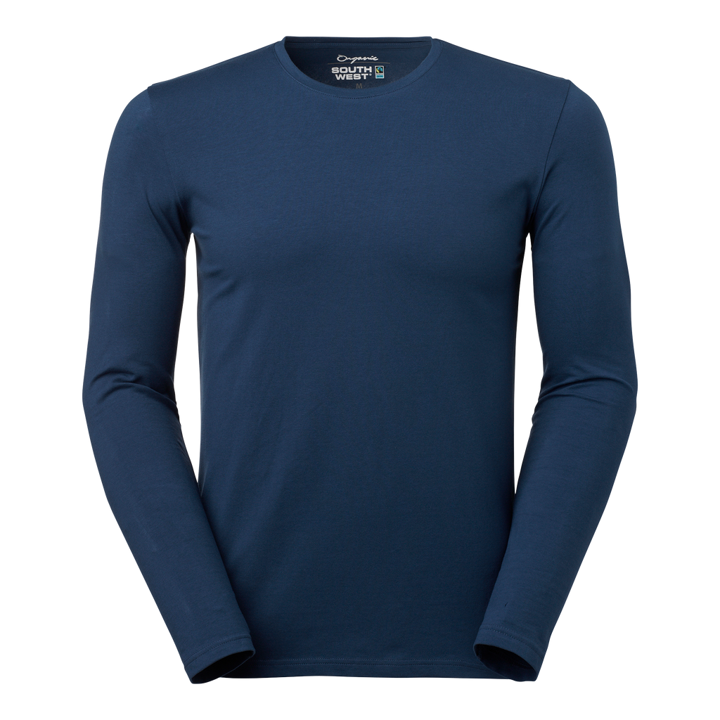 Långärmad T-shirt i Fairtrade-certifierad bomull med stretch och rundhals med smal ribbkant. Bekväm passform som kombinerar stil och hållbarhet för alla tillfällen. Leo T-shirt från South West är en långärmad T-shirt tillverkad i en blandning av Fairtrade-certifier ad bomull, viskos och elastan, vilket ger en bekväm och flexibel passform. Den har en klassisk rundh als med smal ribbkant som ger ett stilrent utseende. Leo T-shirt är perfekt för dem som söker ett pl agg som kombinerar komfort och hållbarhet med en tidlös design. Med GOTS-certifierade färger och en högkvalitativ konstruktion, är denna långärmade T-shirt ett utmärkt val för både arbete och fritid. South Wests engagemang för etiskt producerade kläder gör Leo T-shirt till ett pålitligt och miljövän ligt alternativ för den medvetna konsumenten som uppskattar både stil och ansvarstagande.