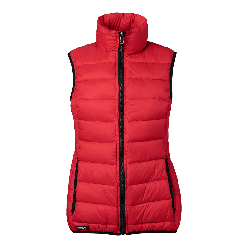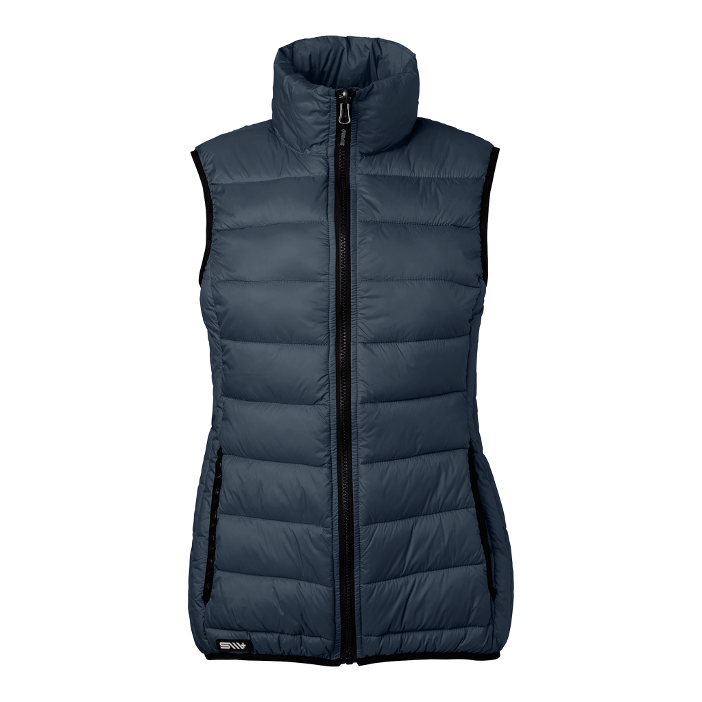 Lättviktsväst med fuskdun och figurnära passform. Kan användas ensam eller fästas i Alma skaljacka s om värmande bålfoder. Smala kanaler håller dunet på plats. Två sidofickor. Elastiska band i nederkan t och ärmhål. Alma Vest w från South West är en elegant och funktionell lättviktsväst designad för kvinnor som sök er både värme och stil. Västen är vadderad med fuskdun som ger en lätt och bekväm isolering, medan d e smala kanalerna säkerställer att dunet hålls jämnt fördelat. Den figurnära passformen gör att väst en smidigt kan bäras för sig själv eller fästas i Alma skaljacka som ett värmande bålfoder. Med två praktiska sidofickor erbjuder västen enkel förvaring, och elastiska band i nederkant och runt ärmhål en ger en perfekt passform. Alma Vest w levereras med svarta zipperpullers och inkluderar extra färg matchade pullers för alla dragkedjor (ej tillgängligt för färgerna dark grey melange och black). Den na väst är ett mångsidigt plagg som passar lika bra på jobbet som under fritidsaktiviteter, med foku s på komfort, kvalitet och flexibilitet.