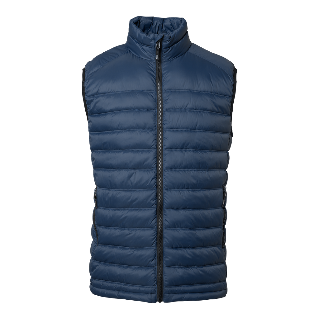 Uppdaterad lättviktsväst tillverkad av återvunnet material med två praktiska sidfickor. Elastiska ba nd runt ärmhålen. Kan användas ensam eller som mellanlager i "The Mix Concept" tillsammans med Ames skaljacka eller parkas. Alve Vest från South West är en modern och hållbar lättviktsväst, designad för att ge värme och komf ort utan att kompromissa med miljövänlighet. Västen är tillverkad av återvunnen nylon och vadderad med återvunnen polyester, vilket gör den till ett medvetet val för den som vill ha ett funktionellt plagg med låg miljöpåverkan. Den har två praktiska sidfickor med dragkedja för säker förvaring, och elastiska band runt ärmhålen ger en bekväm passform som håller värmen inne. Alve Vest ingår i South Wests "The Mix Concept" och kan bäras för sig själv eller enkelt fästas som ett mellanlager i Ames s kaljacka eller parkas för extra värme och skydd. Denna mångsidiga väst är idealisk för både arbete o ch fritid, med en design som kombinerar stil, funktion och hållbarhet.