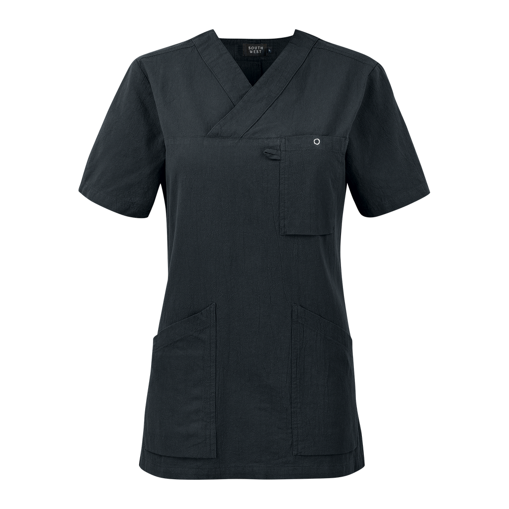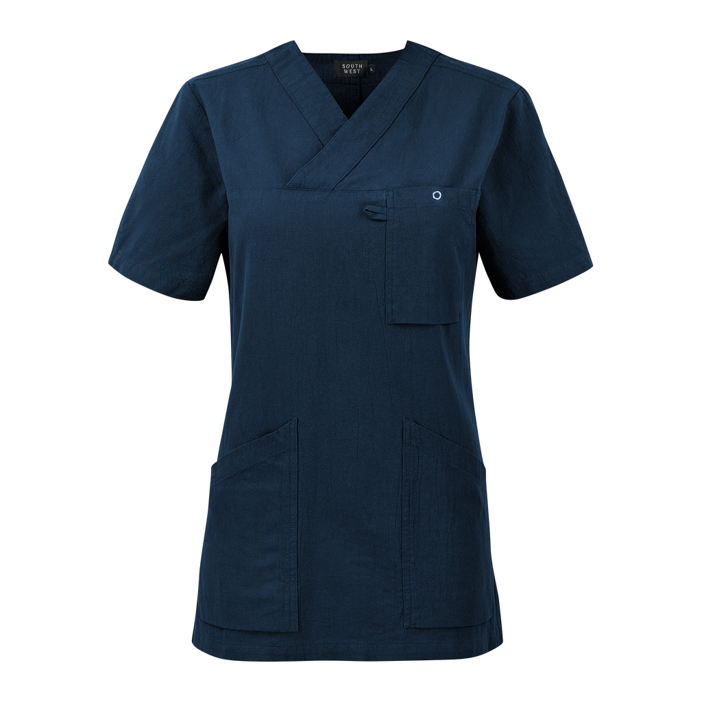 V-blus med figurnära passform och insvängd midja. Utrustad med rymliga framfickor inklusive nyckelhå llare och mobilficka samt bröstficka med ringtryckknapp och korthållare. Slits i sidan. Krinklad bom ull. Carin Blouse från South West är en elegant och funktionell V-blus designad specifikt för kvinnor ino m vård- och omsorgsyrken. Den figurnära passformen med lätt insvängd midja framhäver en feminin silh uett utan att kompromissa med komfort och rörlighet. De rymliga utanpåfickorna framtill, inklusive e n ficka med nyckelhållare och mobilficka, ger praktiska förvaringslösningar för dina viktigaste arbe tsverktyg. Bröstfickan är försedd med en ringtryckknapp och korthållare, vilket gör det enkelt att h a snabb åtkomst till ID-kort och andra nödvändigheter. Med en rygglängd på 72,5 cm i storlek M erbju der Carin Blouse både stil och funktionalitet, vilket gör den idealisk för yrkesverksamma som vill k ombinera en professionell framtoning med praktiska detaljer i sina arbetskläder. South Wests noggran na materialval och höga standarder säkerställer att denna blus håller för daglig användning i krävan de arbetsmiljöer.