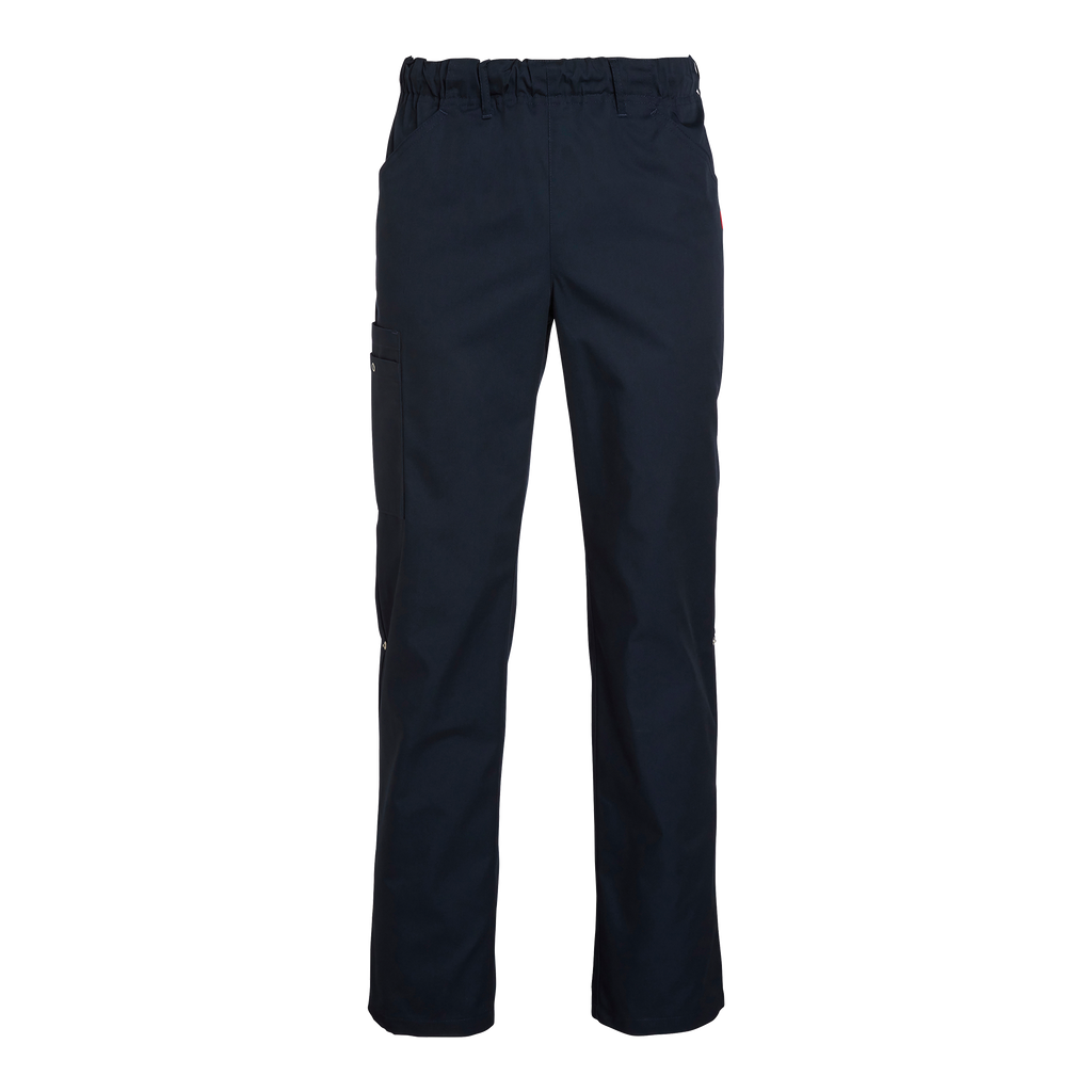 Rymlig unisexbyxa med resår och dragsko i midjan. Utrustad med benslejf för justering till highwater byxa, infällda framfickor och dubbel benficka med pennfickor. Kim Trousers normal length från South West är en bekväm och funktionell unisexbyxa, idealisk för yrk esverksamma som kräver flexibilitet och komfort under arbetsdagen. Byxan har en rymlig passform med resår och dragsko i midjan, vilket gör den enkel att justera för en perfekt passform som sitter bekv ämt hela dagen. Den praktiska benslejfen möjliggör snabb omvandling till en highwaterbyxa, perfekt a npassad för varmare miljöer. Byxan är utrustad med rymliga infällda fickor framtill och en dubbel be nficka med dubbla pennfickor och en ringtryckknapp på ena fickan, vilket ger gott om förvaringsutrym me för arbetsverktyg och personliga tillhörigheter. Med en innerbenslängd på 84 cm i storlek M kombi nerar Kim Trousers både funktionalitet och hållbarhet, vilket gör dem till ett pålitligt val för dag lig användning i krävande arbetsmiljöer. South Wests engagemang för kvalitet säkerställer att dessa byxor håller länge och levererar komfort och stil i varje situation.