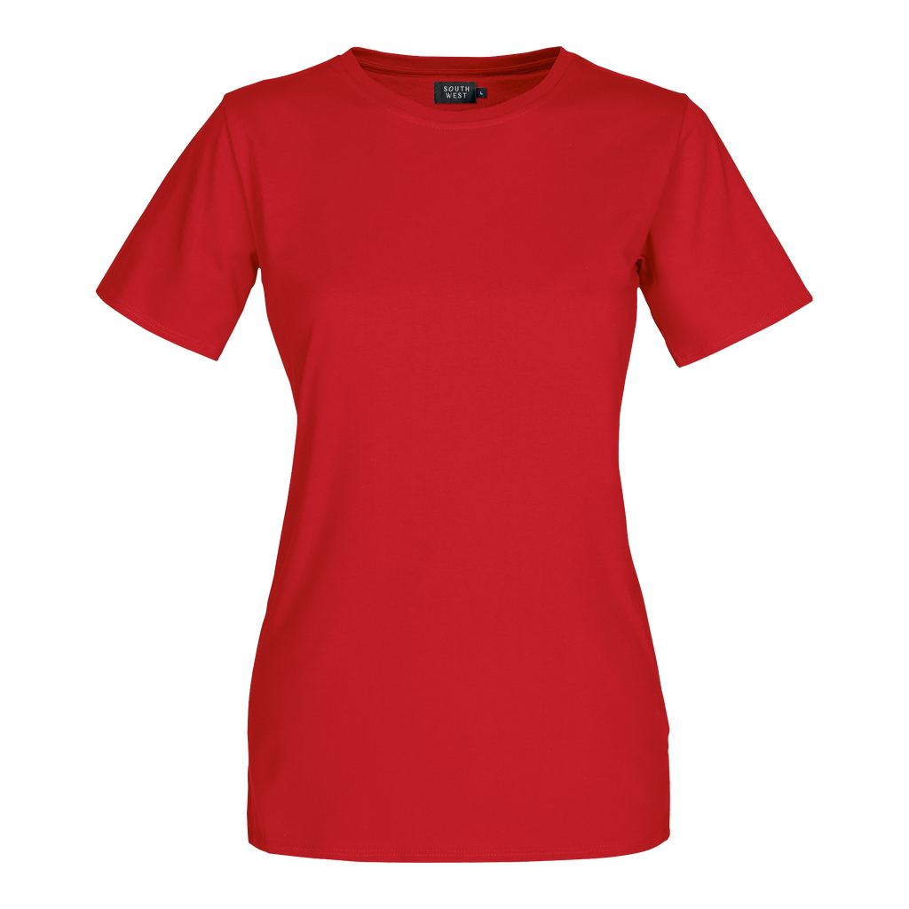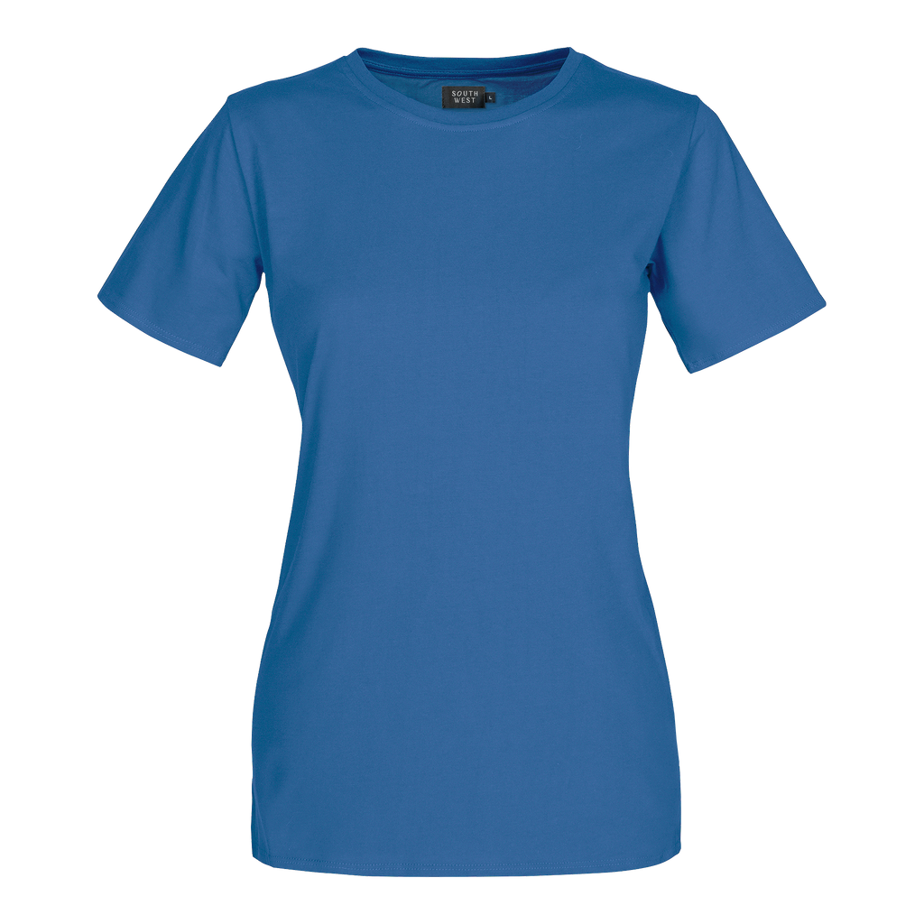 Kortärmad dam t-shirt med figurnära passform och kantad rundhals. Helmi T-Shirt från South West är en figurnära och bekväm dam t-shirt som kombinerar stil och funktio n för yrkesverksamma kvinnor. Den kortärmade t-shirten är designad för att ge en smickrande passform , med en kantad rundhals som erbjuder både komfort och ett stilrent utseende. Tillverkad i en slitst ark blandning av bomull och polyester, är denna t-shirt både mjuk och hållbar, vilket gör den ideali sk för daglig användning i krävande arbetsmiljöer. Med en längd på 66 cm mitt bak i storlek M, ger H elmi T-Shirt en utmärkt täckning och komfort under hela dagen. South Wests höga kvalitetsstandarder säkerställer att denna t-shirt bibehåller sin form och färg även efter upprepad tvätt, vilket gör de n till ett pålitligt val för kvinnor som söker både stil och funktionalitet i sina arbetskläder.