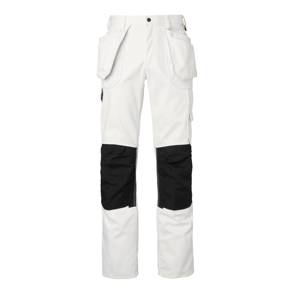 Målarbyxa med förböjda ben och knäfickor i CORDURA®. Flera fickor inklusive hängfickor och benficka med dold dragkedja. Reglerbar hammarkrok och D-ring. Idealisk för yrkesverksamma inom måleri. Upptäck Top Swedes 2515 Painter's Trousers, den ultimata målarbyxan för yrkesverksamma inom måleri o ch bygg. Dessa byxor är designade med förböjda ben och knäfickor i slitstark CORDURA®, vilket erbjud er plats för knäskydd i två nivåer för extra komfort och skydd. De har två framfickor, två bakfickor med bälg, och löst hängande spikfickor, alla förstärkta med CORDURA® för ökad hållbarhet. Vänster h ängficka har en extra ficka, medan höger hängficka har tre mindre extrafickor och en dold ID-kortsfi cka som kan fällas ned. Den framflyttade spackelspadefickan är utformad för att ge bättre komfort oc h åtkomst. Byxan inkluderar även en benficka med dold dragkedja, pennfack och telefonficka, samt en reglerbar hammarkrok och en D-ring. Dessa funktioner gör byxan idealisk för krävande arbetsmiljöer d är funktionalitet och hållbarhet är avgörande. Välj 2515 Painter's Trousers för en kombination av hö g kvalitet, funktionalitet och komfort som uppfyller de högsta standarderna inom arbetskläder.