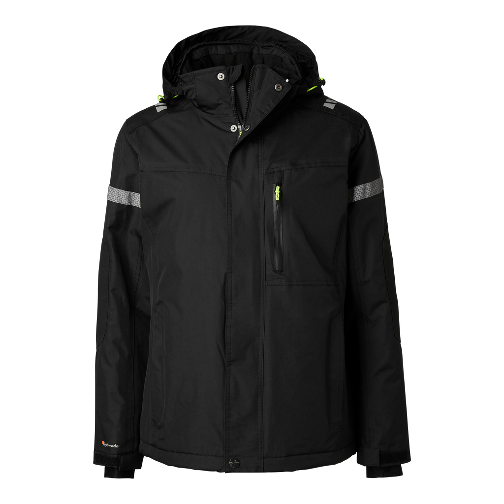 Vind- och vattentät vinterjacka med tejpade sömmar, fodrad med quilt och material som ger värme och ventilation. Bröstficka med vattentät dragkedja, innerficka, napoleonficka och sidofickor med dragke djor. Löstagbar huva, reflexdetaljer, reglerbart ärmslut och nederkant. Upptäck Top Swedes 350 Jacket, en ultimat vinterjacka designad för yrkesverksamma inom bygg och indu stri som behöver pålitligt skydd mot vind och vatten. Denna jacka är tillverkad av slitstark nylon o ch är vind- och vattentät med tejpade sömmar för extra skydd. Jackan är fodrad med quilt och har ett ryggparti som tillför ökad värme och ventilation, vilket gör den idealisk för kalla arbetsdagar. Fö rvaringsmöjligheter inkluderar en bröstficka med vattentät dragkedja, en innerficka/telefonficka, en stor napoleonficka under slå och sidofickor med dragkedjor. Den löstagbara fodrade huvan ger extra skydd mot elementen, medan reflexdetaljer ökar synligheten och säkerheten. Jackan har reglerbara ärm slut och nederkant samt muddar med tumgrepp för optimal passform och komfort. Välj 350 Jacket för en kombination av hållbarhet, funktionalitet och komfort som uppfyller de högsta standarderna inom arb etskläder.