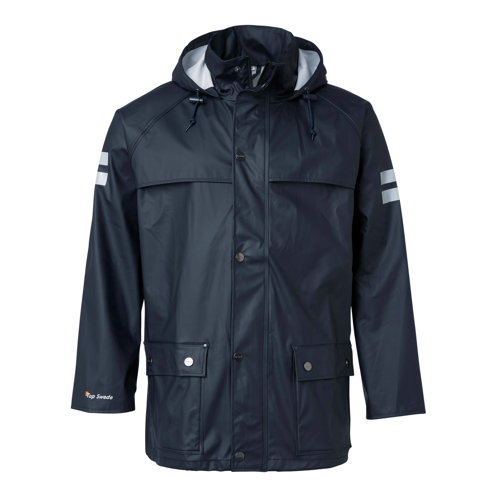 Regnjacka 80 cm i smidigt stretchmaterial med svetsade sömmar. Två framfickor med lock, blixtlås med slå och tryckknappar, samt huva med snodd. Reglerbart ärmslut för optimal passform. Upptäck Top Swedes 9195 Rain Jacket, en 80 cm lång regnjacka designad för yrkesverksamma inom bygg o ch industri som behöver ett pålitligt skydd mot regn. Denna regnjacka är tillverkad i ett smidigt st retchmaterial med svetsade sömmar för maximal vattentäthet och hållbarhet. Jackan har två framfickor med lock för säker förvaring, ett blixtlås med slå och tryckknappar för extra skydd mot regn, samt en huva med snodd för optimal anpassning. Reglerbara ärmslut garanterar en perfekt passform och komf ort under arbetsdagen. 9195 Rain Jacket är det ideala valet för de som behöver både funktionalitet o ch skydd i våta och utmanande arbetsmiljöer. Välj 9195 Rain Jacket för en regnjacka som kombinerar h ög kvalitet, funktionalitet och komfort.